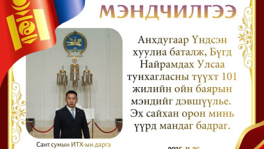 ИРГЭНИЙ АНДГАЙ ӨРГӨХ ЁСЛОЛЫН АЖИЛЛАГАА БОЛЛОО.