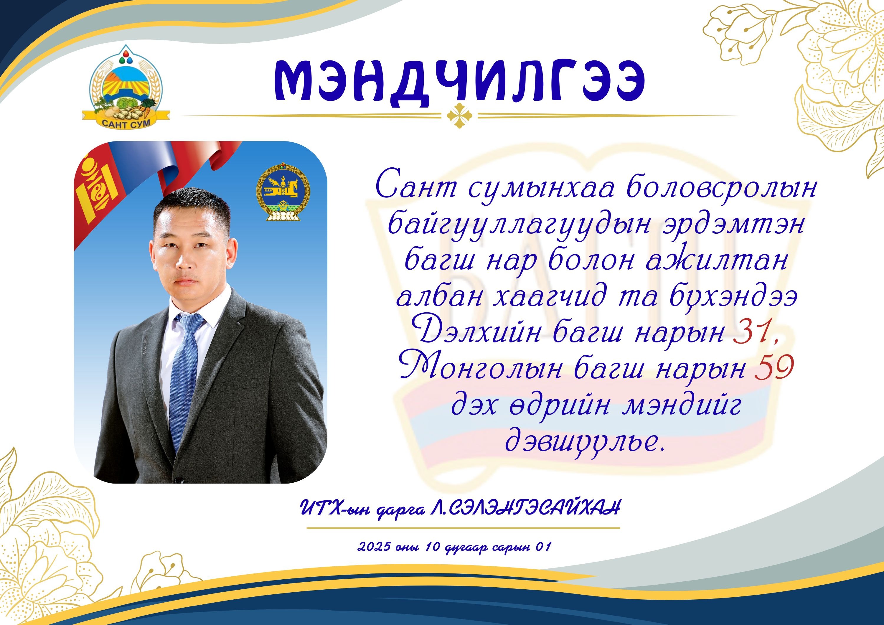 БАГШ НАРЫН БАЯРЫН МЭНД ДЭВШҮҮЛЬЕ
